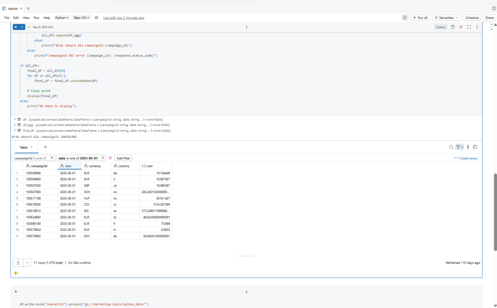 Data ingestion and normalization happen in Databricks, allowing us to scale workloads and parallelize API calls efficiently.